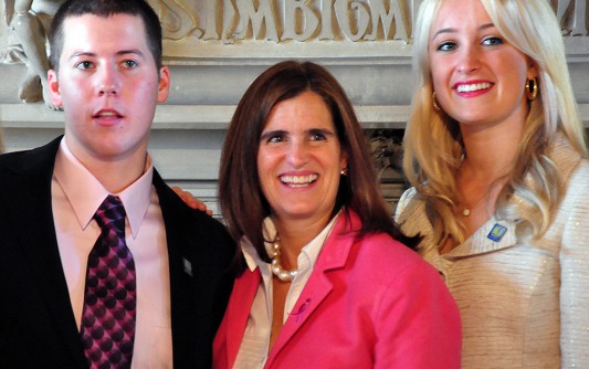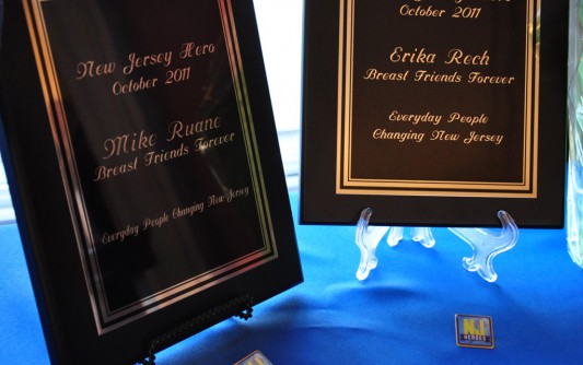 Our seventh heroes, Mike Ruane and Erika Rech of Breast Friends Forever, were announced this morning. They came to the Governor’s Residence, Drumthwacket, for a gathering with their families, board members, doctors they work with, patients they have helped, and various members of the breast cancer awareness community throughout the state to recognize Breast Cancer Awareness month. Commissioner O’Dowd from the Department of Health and Senior Services was also here today to highlight a program the state has to help women in need get the screenings that are necessary to detect this cancer. Mike and Erika started Breast Friends Forever (BFF) when they were just 15 years old. Erika’s mom was diagnosed with breast cancer around this time and being cousins, Mike and Erika watched the struggle and toll it took on their family. They wanted to help women in need who were diagnosed with cancer in their community and state. They started fundraising at their local church and shopping center, with the proceeds going directly to the women who needed it. They helped pay women’s mortgages, electric and heating bills, costs for wigs, and even school supplies for some of their children. In the past few years they have raised over $300,000 for women throughout our state. It just goes to show you that no matter what age you are, you can make a difference. They have since opened chapters in 6 other states, with 10 states on the waiting list for their own chapters. They are both a real inspiration and I truly admire the work they are doing, and continue to do, for these women. To learn more about Breast Friends Forever, please visit their website: www.breastfriendsforever.org