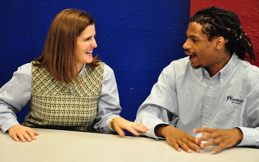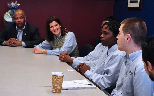 Today was a great event because not only did I get to name our next hero and meet some incredible people, but my daughter Sarah and her friend were able to join me on their day off from school. I had the pleasure of naming Robert Clark, founder of YouthBuild Newark, my 2nd NJ Hero of 2012. YouthBuild is a very unassuming storefront in downtown Newark, but what happens behind it’s doors is nothing short of amazing. The YouthBuild Newark program is based off the national YouthBuild model, which gives youth ages 16-24 a second chance at a new life. The students coming into this program have somehow lost their way, be it dropping out of high school, incarceration, or other. YouthBuild is an intensive year-long program that helps these students get their high school equivalency diploma while teaching them important life skills and the value of hard work. When they leave this program, they not only carry their GED, but also a certificate for construction trades. An incredible 83% of students who graduate from the program go on to be gainfully employed or to pursue their post-secondary education. This is a place that gives these youth the hope that there is a better life for them down the road. Sarah and I had the opportunity to sit down and talk with about 9 students from the school who make up their “Policy Council”. We were able to hear their stories about what brought them to YouthBuild, how it’s changed their lives, and their hopes for the future. Each and every student I spoke to today was a real inspiration. Robert made the YouthBuild Newark program a reality in 2003 and with his dedicated staff has been changing the lives of young people in Newark ever since. I thank him for all the hard work he does to help others in his community and throughout the state. To learn more about YouthBuild Newark, please go to their website: http://youthbuildnewarknj.org/