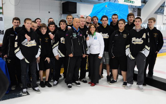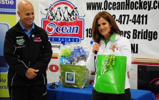 After being a hockey coach for some 25 years, Alex DePalma felt he was ready for a new challenge involving hockey. Recognizing the large number of children and adults with developmental disabilities in our state, he decided it would be exciting and beneficial to start a hockey program to introduce this group of citizens to his favorite sport. In 2009, Alex started the Brick Stars Challenger Program, which has since turned into the fastest growing special needs ice hockey program in NJ. Today, I had the opportunity to meet Alex, his coaches/staff, his players, and their parents at Ocean Ice Palace in Brick. Watching the young hockey players out on the ice was nothing short of inspiring. The program is designed to help players learn the fundamental skills to play ice hockey. What started out as Alex wanting to bring a fun sport to children with disabilities, actually turned into a life changing event for many of these participants. They have become more animated and talkative. They are able to maintain better focus in their daily lives. They have become physically stronger and developed more confidence. The program teaches them about coordination, strength, endurance, and motivation, which helps with their independence. This program started with only 8 players and now has over 40. It is clear the positive effect that this ice hockey program is having on these individuals. Alex is an incredibly humble and deserving NJ Hero. He took his love of hockey and shared it with a community of children and adults that wouldn’t ordinarily have the opportunity to play on a team. You can see the joy that each skater is experiencing and the pride that is expressed by their parents. It’s fitting that we were able to recognize Alex during April, which is Autism Awareness Month. I hope that by highlighting the great work he is doing in his community, it will inspire others to do the same. To learn more about the Brick Stars Challenger Program, please visit their website: http://brickhockeyclub.com