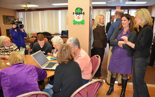 Today I had the pleasure of naming my first hero of 2014, Diane Taylor of Pass It Along. Diane was inspired to start Pass It Along (PIA) in 2001 after a group of neighborhood teenagers asked her to help them collect food for a local food pantry. She realized there were a number of young people in her immediate community who had excellent ideas for community service activities and volunteerism, but just needed some adult guidance and the appropriate tools to get the ball rolling. So with that, she decided to leave her full time job and start Pass It Along, a non-profit that gives young people the opportunity to plan, execute, lead, and participate in initiatives to bring about positive change in their community and state. This model has allowed Pass It Along to start and continue numerous programs that help a wide array of needs. Today’s specific program I was able to take part in was called “Grandparents Gone Wired”. Students from Newton High School came to Liberty Towers, an independent senior living facility in Newton, to teach resident seniors how to properly and effectively use their computers, ipads, and cell phones, in order to stay connected to their friends and families. It was great to see so many young people helping to teach their elderly friends how to be tech savvy. Diane has really tapped into an area of volunteerism that can continue to grow and change with the youth in the community. The Pass It Along model is clearly working and their staff and volunteers are reaching out to help so many fellow citizens in need. I am honored to name Diane a New Jersey Hero and look forward to seeing what our Pass It Along youth will come up with next! For more details on Pass It Along, please visit their website: http://www.passitalong.org/
